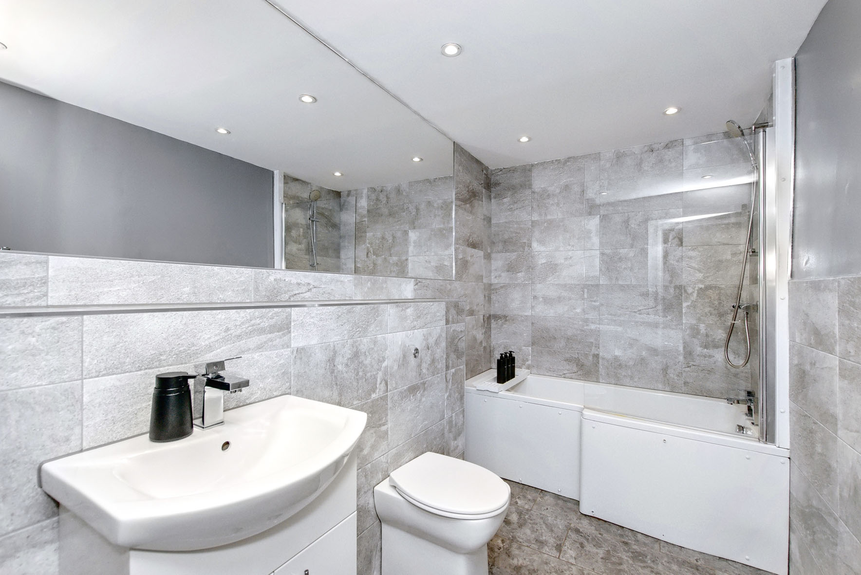 - Contemporary bathroom with overhead shower
