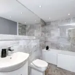 - Contemporary bathroom with overhead shower